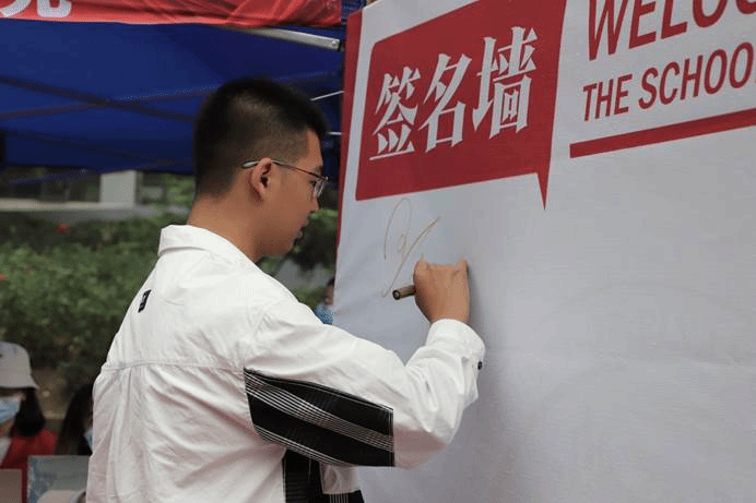 在老师们和志愿者们的带领下,新生们圆满地完成了一系列流程,小萌新们在签名板上签下名字并与金院吉祥物金小融合影留念,以容光焕发的精神面貌开启了人生的新篇章。