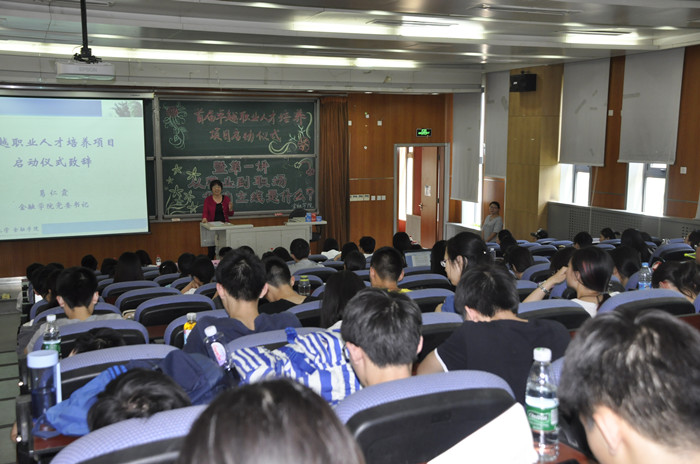 2017年5月10日下午,由开云kaiyun官网职业发展中心主办的“卓越职业人才培养项目启动仪式暨第一讲:从学业到职场,你的主线是什么?”在沙河校区东区学院楼3号楼222教室顺利召开。开云kaiyun官网党委书记葛仁霞老师、中信建投证券股份有限公司人力资源部高级副总裁胡炜先生、副书记王辉老师、学生就业创业指导中心就业创业信息管理与服务办公室副主任邸飞老师出席了本次活动,首届卓越职业人才培养项目的38位入选同学及本科一、二、三年级的120余名同学参加了本次活动。活动由开云kaiyun官网学生工作办公室主任王志梅老师主持。