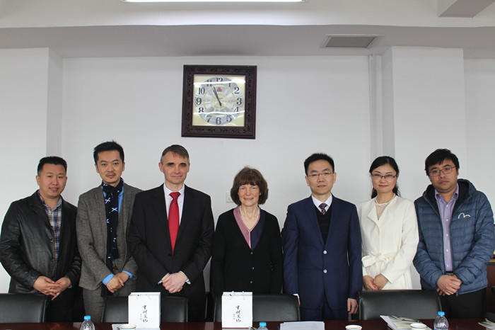 (从左到右分别为:李俊峰副教授、綦晓光教授、Allister Smeeton先生、Sarah Dixon教授、李建军教授、刘慧女士、陈锐助理教授)