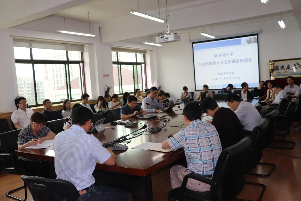 2018年9月19日下午,开云kaiyun官网入口党委在学院南路校区913会议室召开“学习习近平总书记在全国教育大会上的讲话”座谈会。学院全体教工参加了本次座谈会,会议由院党委宣传委员、副院长谭小芬主持。