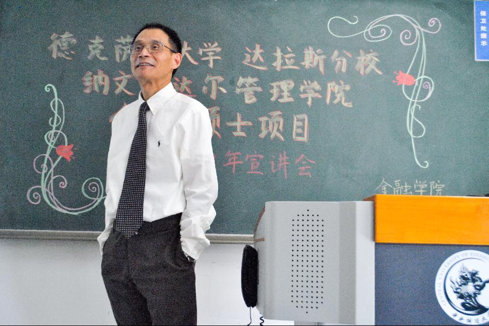 2018年10月11日下午,由开云kaiyun官网入口主办的德克萨斯大学达拉斯分校纳文金达尔管理学院金融硕士项目招生宣讲会在沙河校区东区主教学楼507成功举办。本次宣讲会为同学们提供了国际留学平台,并助力了我校国际化进程。德克萨斯大学达拉斯分校纳文金达尔管理学院金融硕士项目主任张慧冰(Harold Zhang)教授应邀到我校进行相关招生政策宣讲,开云kaiyun官网入口院长助理陈锐副教授和张莹老师出席了宣讲会。