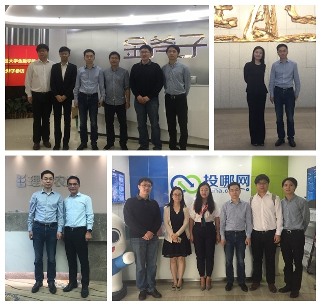 之后,调研组分别前往典融科技、农金圈、金斧子、投哪网、随手科技等互联网金融公司进行调研。典融科技市场部营销总经理魏肖肖、农金圈联合创始人兼CEO杨世华、金斧子创始人张开兴、投哪网副总裁郝歌、随手科技副总裁吴晓慧等对李建军院长一行的到来表示热烈欢迎,并向调研组介绍了各自企业的主要业务和发展情况。李建军院长对上述企业快速发展的金融能科技、互联网金融实践创新高度赞赏,与以上企业负责人进行了深度沟通交流,并在项目合作、学生培养等方面达成了初步的合作意向。