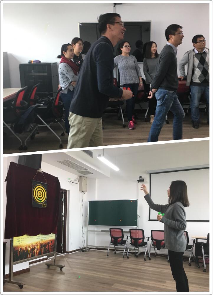 飞镖趣味赛的趣味性和互动性,吸引了许多教职工参与。飞镖比赛的规则是参赛选手分别投掷5支飞镖,以累计环数高低角出优胜奖。飞镖比赛不但比视力,还得需要较大的腕力和稳定的发挥。最终商有光老师以350环的高分获得了飞镖男子冠军,吴偎立老师和王汀汀老师获得了飞镖男子亚军。史秀红老师以340环的不错比分获得了飞镖女子冠军,刘向丽老师和苏玉桃老师获得了飞镖女子亚军。
