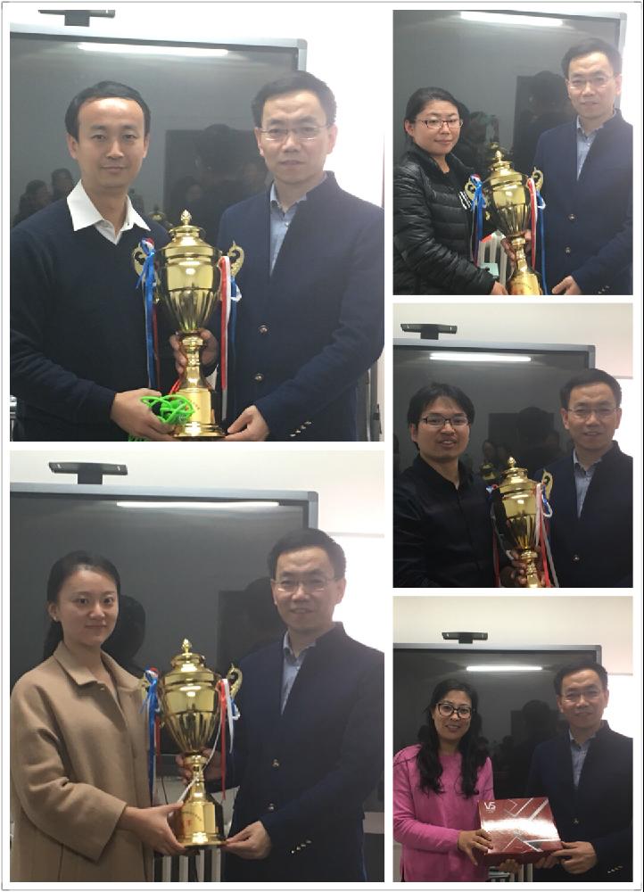 活动结束后,下午四点钟,学院院长李建军为获奖者颁发奖品,获奖老师接过沉甸甸的大奖杯,满脸笑容,其它老师纷纷鼓掌祝贺。